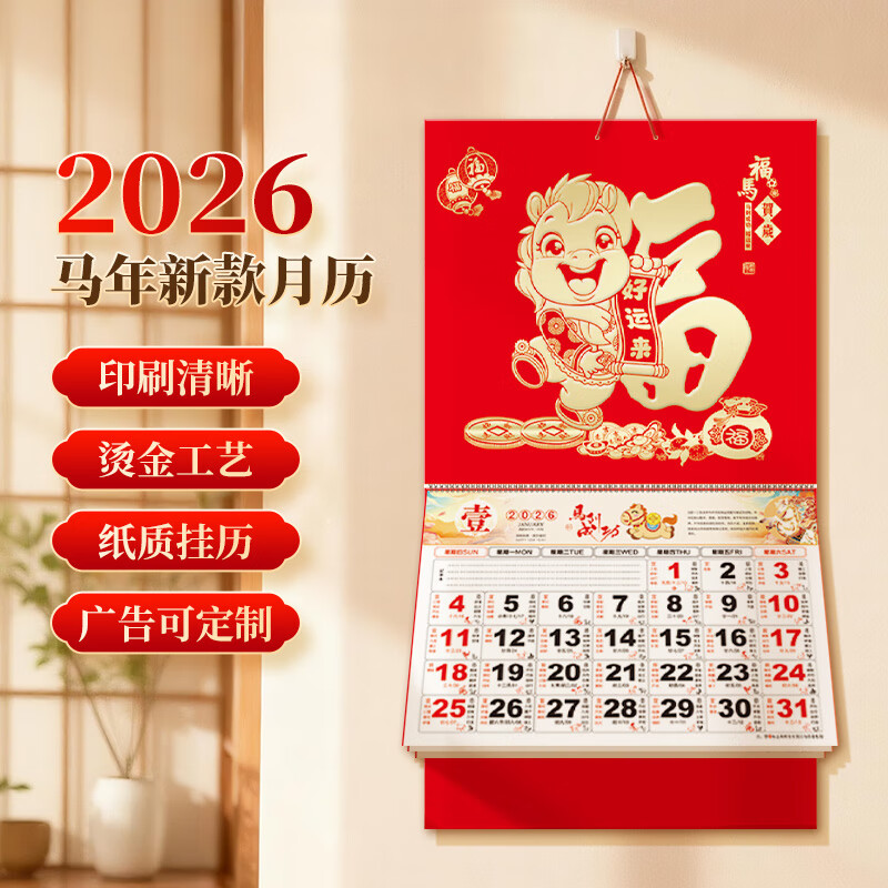 致境挂历2026年马年挂墙式日历新年手撕挂历台历老黄历挂式月历吊历福字新款家用壁挂大挂历 大六开