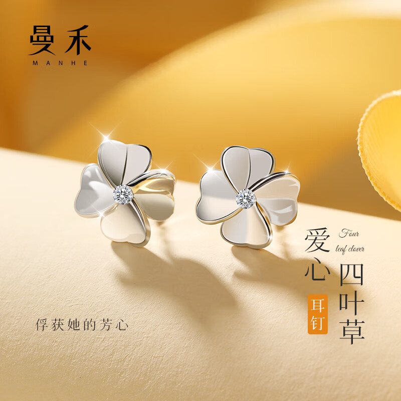 曼禾(MANHE)S999足银四叶草耳钉女士耳环首饰品老婆跨新年生日礼物送女生朋友