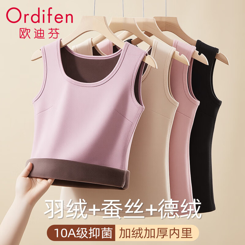 欧迪芬羽绒蚕丝女士保暖背心加绒加厚内穿打底坎肩无痕马甲秋冬季M