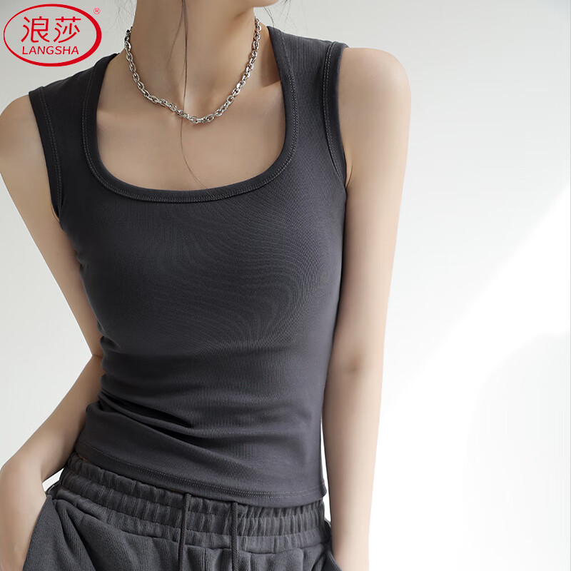 浪莎宽肩吊带背心女2025新款大U领内搭遮副乳外穿修身显瘦打底上衣