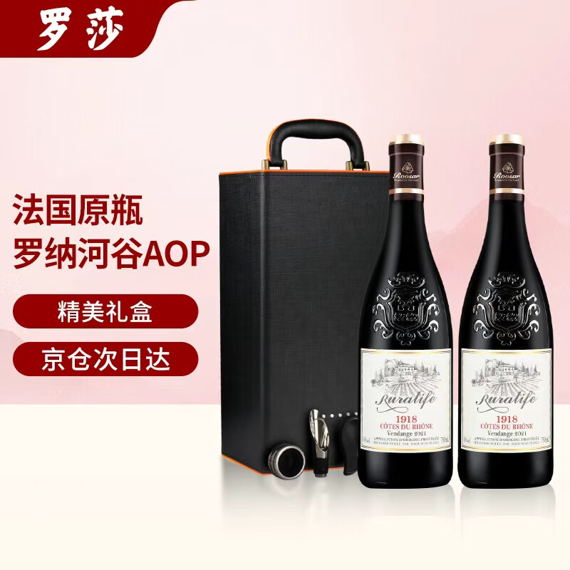 罗莎庄园法国原瓶进口红酒田园罗纳河谷产区AOP干红葡萄酒2瓶过年送礼礼盒
