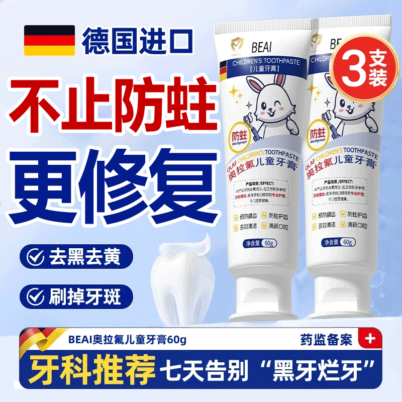 儿童牙膏3-12岁含氟防蛀奥l拉氟儿童牙膏牙龈护理去渍清新口气60g