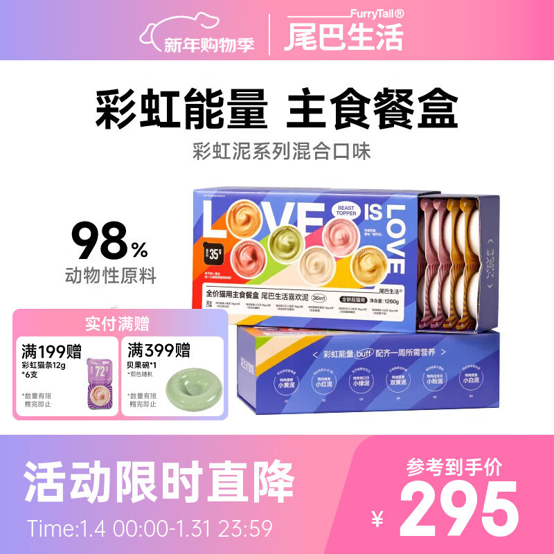 尾巴生活彩虹泥主食罐35g*72杯猫咪囤货礼盒 成猫幼猫全价猫湿粮