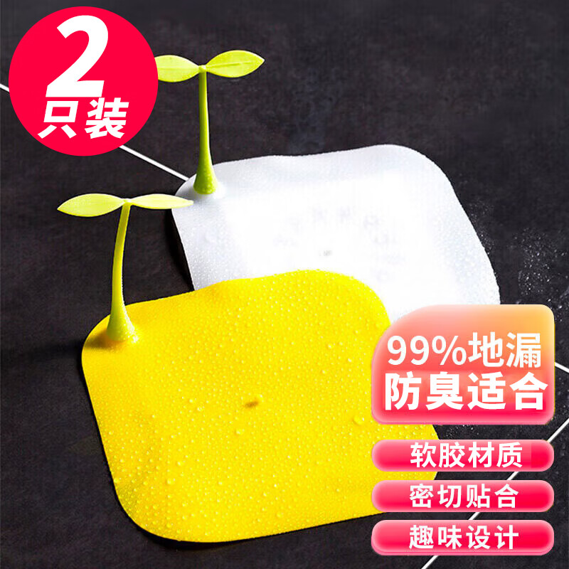 洁比世地漏隔臭盖2片装下水道卫生间浴室水槽防虫隔臭封口盖 黄色