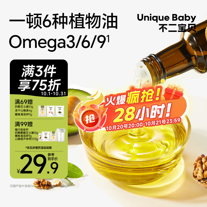 不二宝贝食用植物调和油250ml牛油果亚麻籽儿童宝宝热炒低温冷榨孕妇初榨