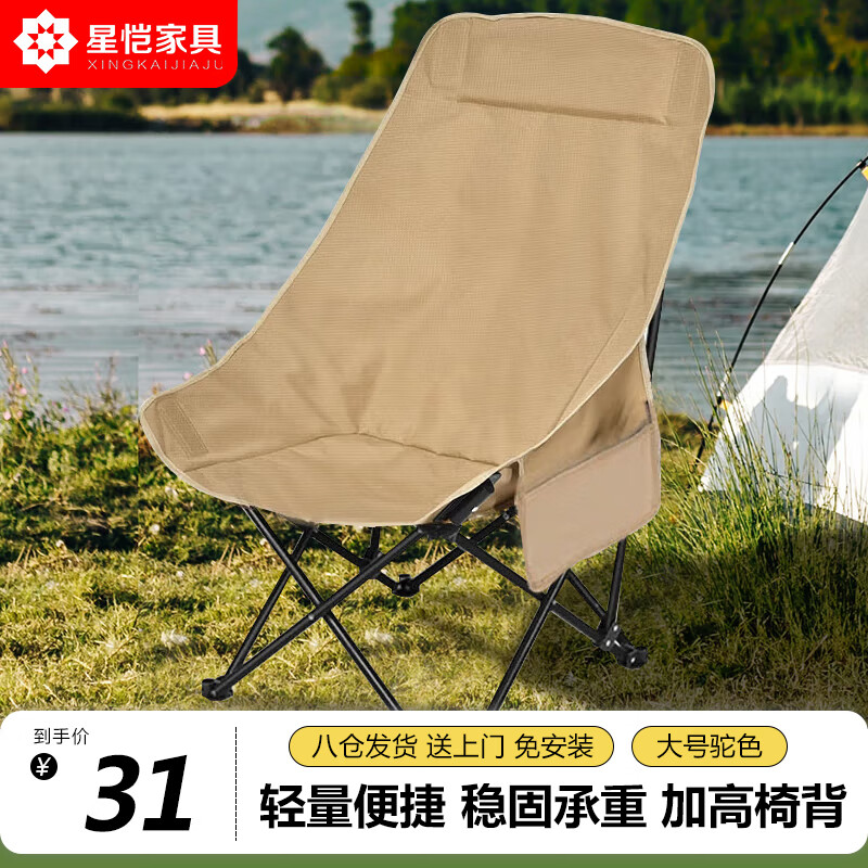 星恺户外折叠椅露营椅子月亮椅沙滩钓鱼椅野餐椅子HW023高背卡其
