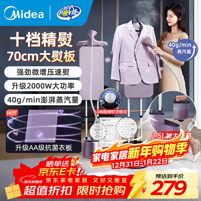 美的(Midea)挂烫机家用2025新款手持便携大功率电熨斗挂烫机一体平烫立式高端蒸汽熨烫机熨衣服服装店商用小型 升级AG+微纳米银离子抑菌板YGD20P6