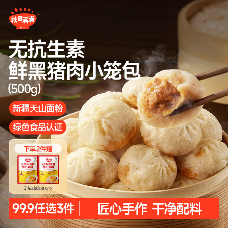秋田满满无抗黑猪肉小笼包纯手工老面包子500g儿童早餐嵊州风味松茸提鲜