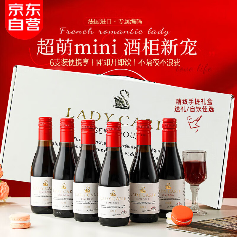 拉蒙塔尼法国进口红酒 半甜红葡萄酒女士微醺小酒过节送礼原酒进口187ML*6