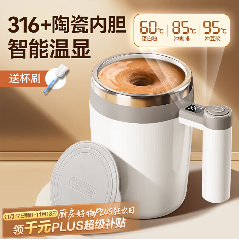 米小舒自动搅拌杯充电咖啡杯316陶瓷电动搅拌杯子懒人磁力旋转杯豆奶粉