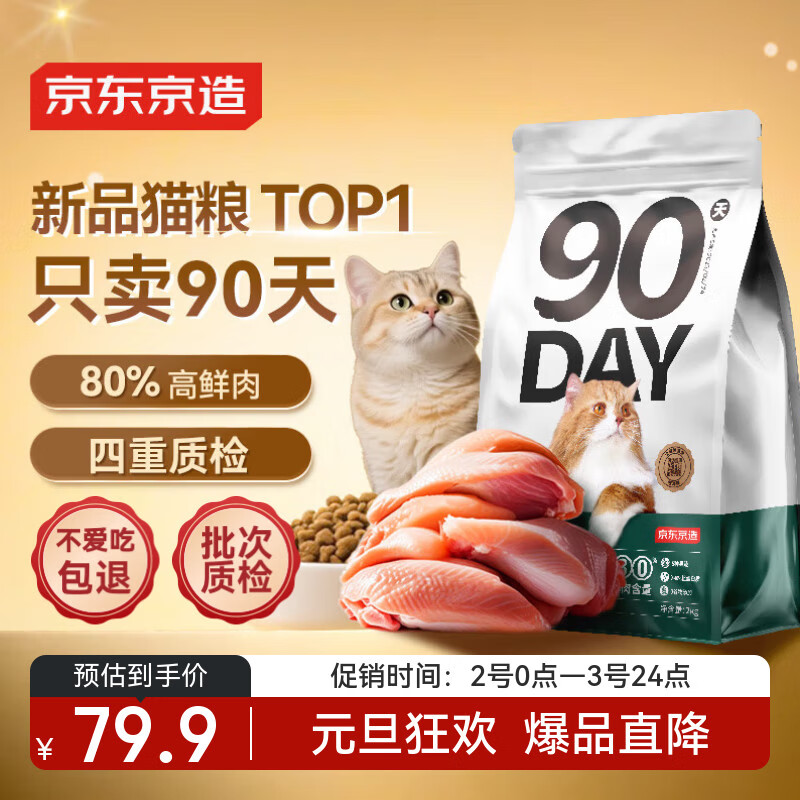 京东京造咕噜宣言90天全价鲜鸡肉猫粮2kg幼猫成猫益生菌高鲜肉猫粮