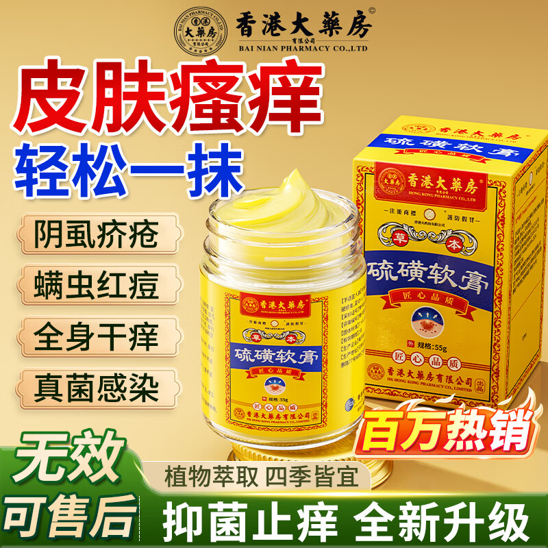 香港大药房有限公司硫磺软膏止痒抑菌皮肤瘙痒身体痒蚊虫叮咬蚊子肿消阴虱私处杀菌