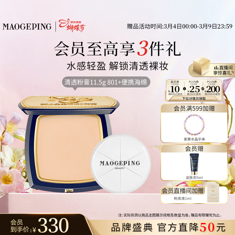 毛戈平光感清透无痕粉膏801白皙色11.5g遮瑕38女神节礼物送女友