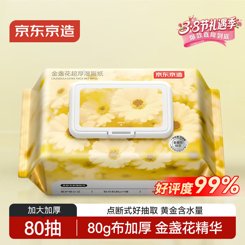 京东京造金盏花湿厕纸80抽 超厚厕纸湿巾湿纸巾抽纸巾
