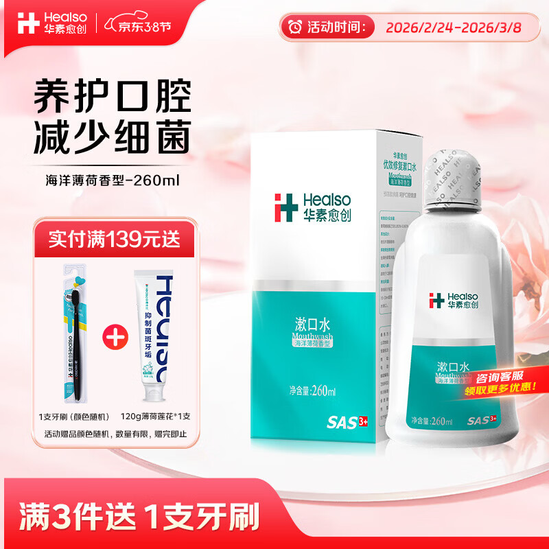 华素愈创 漱口水便携 抑菌清新口气去异味 优效修护含漱液 海洋薄荷260ml