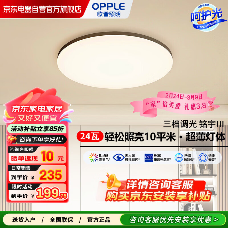欧普照明(OPPLE)欧普吸顶灯卧室灯具非客厅灯可调光LED照明灯饰铭宇呵护
