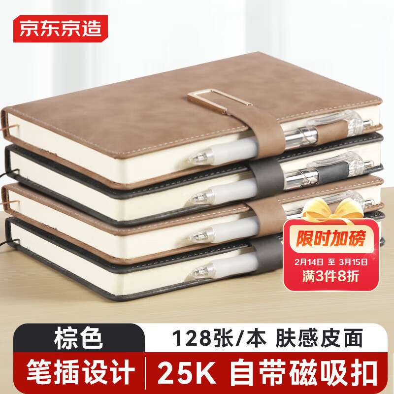 京东京造【热门商品】25K/128张单本羊巴皮肤感皮面本笔记本记事本子 加厚皮面 办公用品会议纪要 棕色