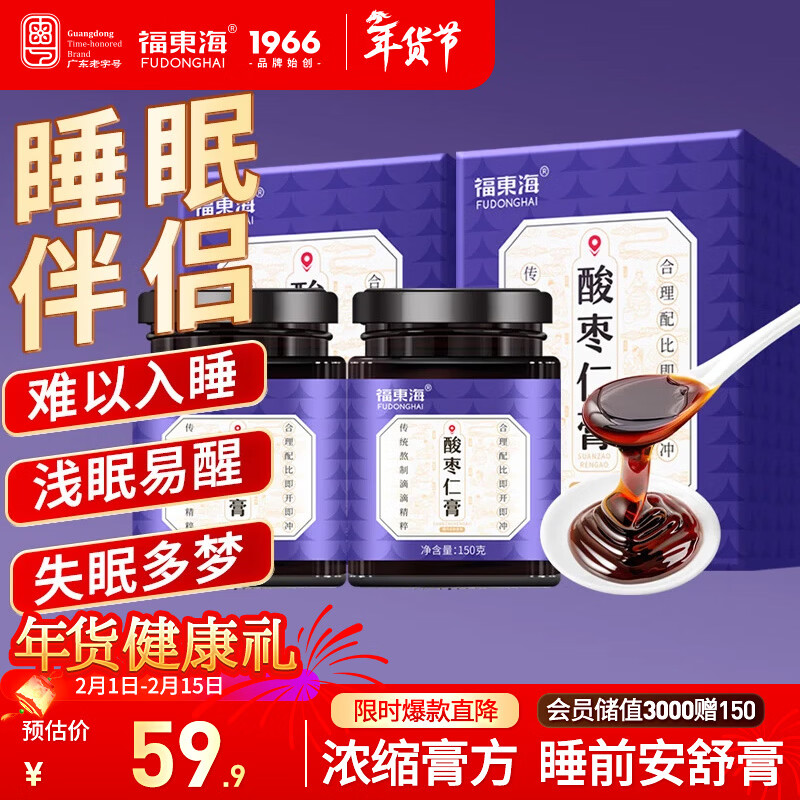 福东海酸枣仁膏150g*2瓶 高浓缩酸枣仁百合茯苓膏睡前安舒膏难眠滋养茶
