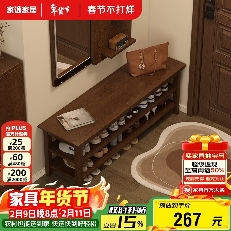 家逸实木换鞋凳入户门口高级感穿鞋凳家用玄关进门鞋凳鞋柜一体可坐