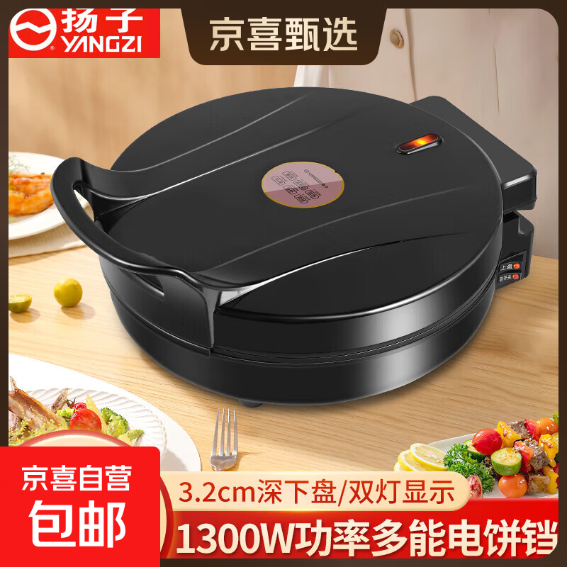 扬子(YANGZI)电饼铛多功能煎烤机家用双面加热煎饼锅烙饼锅早餐机30cm加大加深不粘电饼档三明治早餐烤饼锅 黑色30cm 3.2cm深