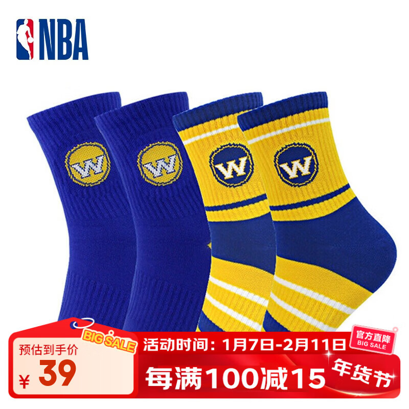 NBA中筒男士跑步运动袜舒适亲肤吸汗精梳棉四季款篮球袜2双