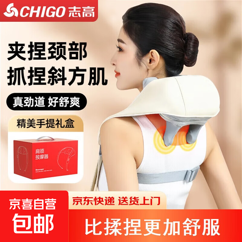 志高(CHIGO)肩颈斜方肌按摩器颈部按摩仪多功能按摩披肩家用揉捏加热颈椎按摩神器送父母生日礼物七夕高档实用 【顶配款】10D硅胶夹揉+强劲电机