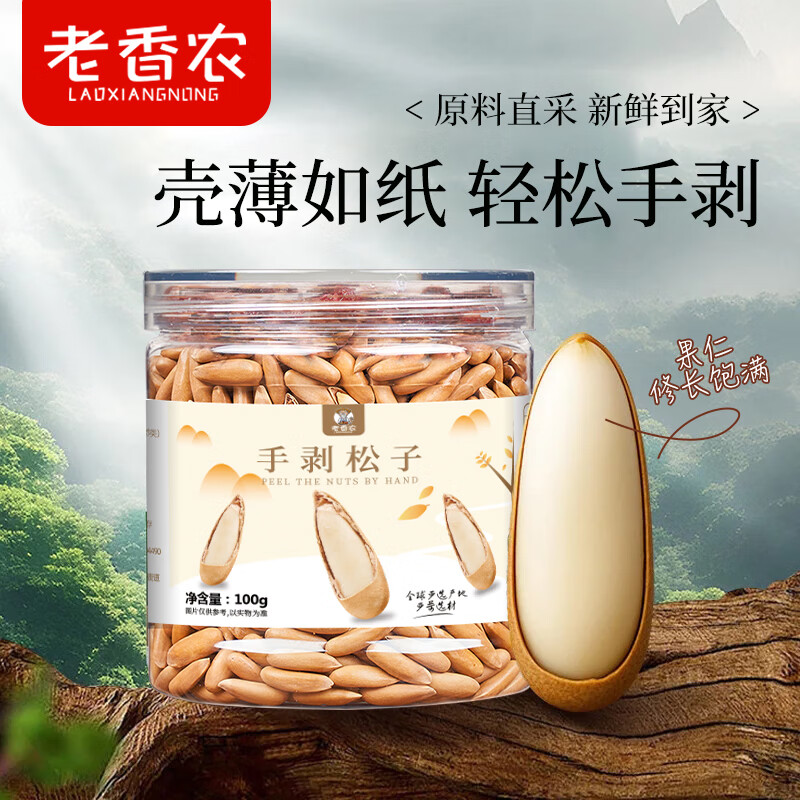 老香农新货巴西松子大颗粒100g罐装手剥松子年货坚果炒货干果松子小零食