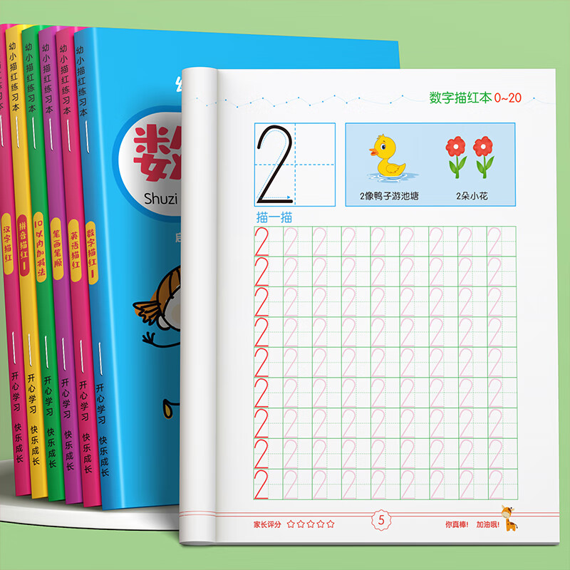 金枝叶儿童数字控笔训练描红本字帖学前班幼儿园专用幼小衔接数字拼音偏旁汉字练字本练字帖贴幼儿写字