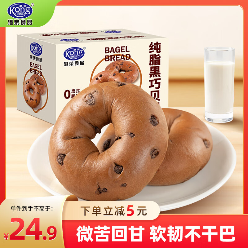 港荣纯脂黑巧贝果420g早餐面包蛋糕健康零食品西式糕点38女神节礼物盒