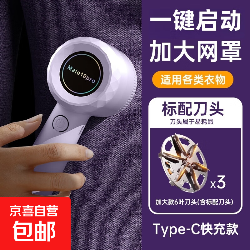 【6叶钢刀】毛球修剪器家用充电式剃毛机去毛球神器家用衣服衣物刮毛球剃毛器充电式衣物护理机 紫罗兰【充电款】 3刀头 【赠2个备用刀头】