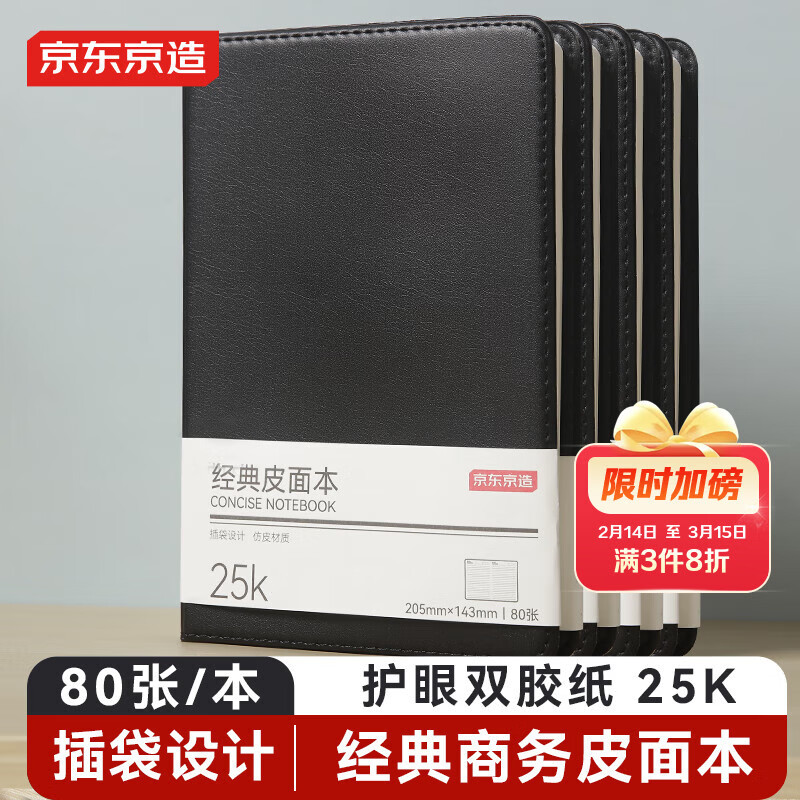 京东京造【热门商品】25K/80张商务经典皮面本笔记本记事本 日常办公会议纪要