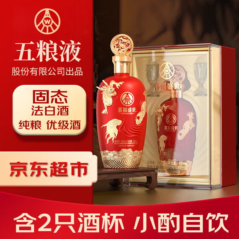五粮液股份出品鸿运婚宴酒浓香型固态法白酒 52度 500ml 单瓶装 送礼