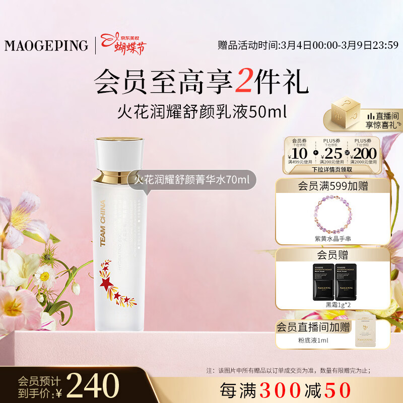 毛戈平国家队火花润耀舒颜菁华水70ml爽肤水38女神节礼物送女友