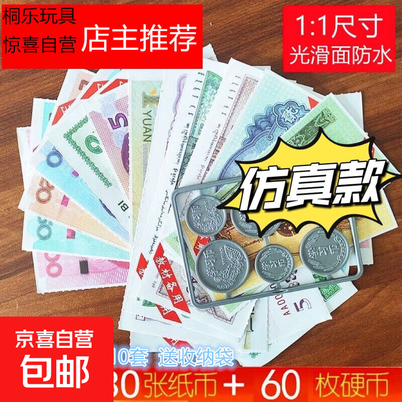 一二年级下册数学认识人民币学习教具儿童玩具仿真钱道具小学生元角分学具换算纸币样钞票教学套装 升级10套130张90币送收纳袋
