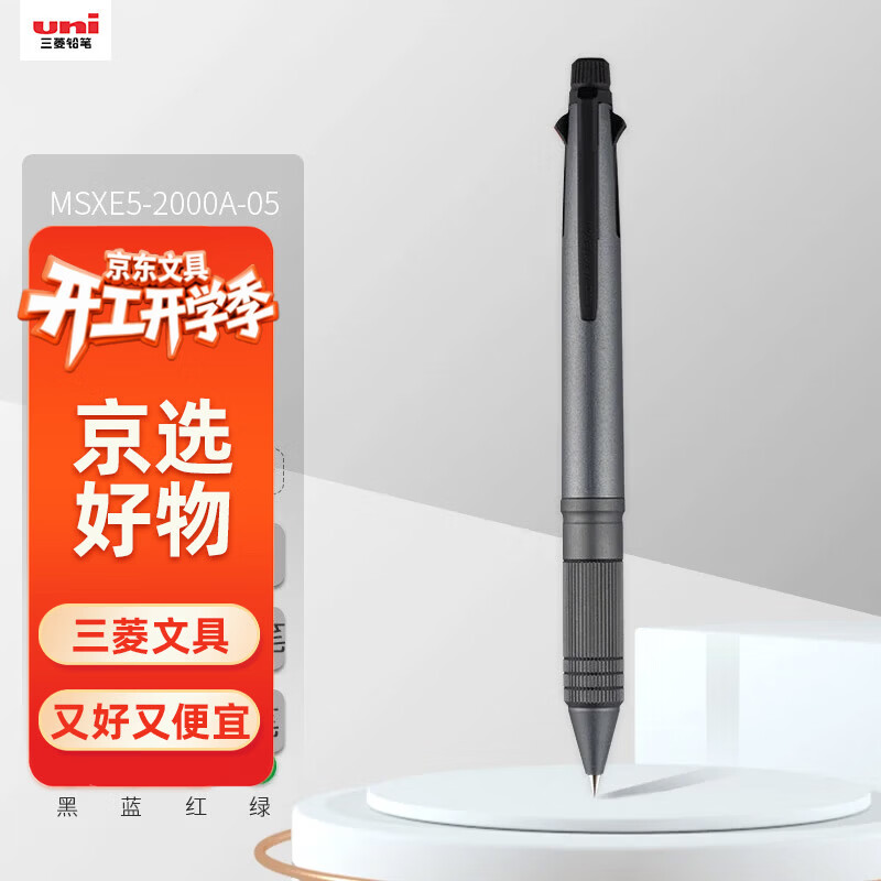 uni三菱 五合一多功能笔商务中油笔签字笔原子笔(四色圆珠笔 自动铅笔)深灰色笔杆 MSXE5-2000A-05