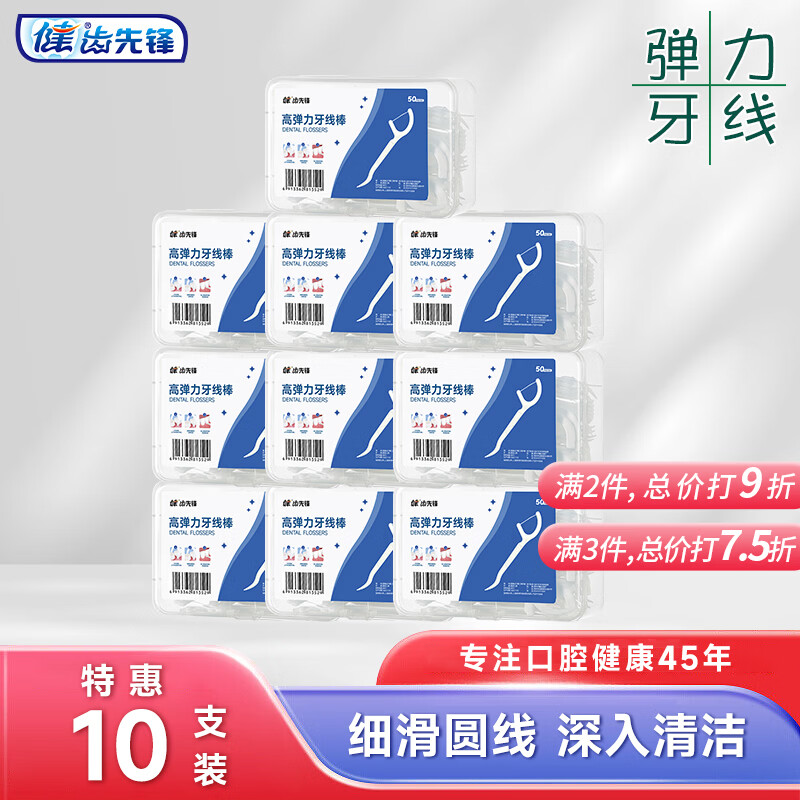 健牙线京东自营细滑深洁牙齿线款10盒共500支 清洁齿缝便捷牙签随机