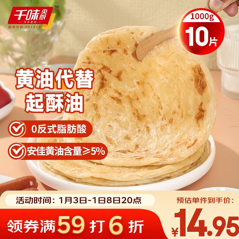千味央厨黄油原味手抓饼1kg/10片装儿童早餐食品半成品0反式脂肪0起酥油
