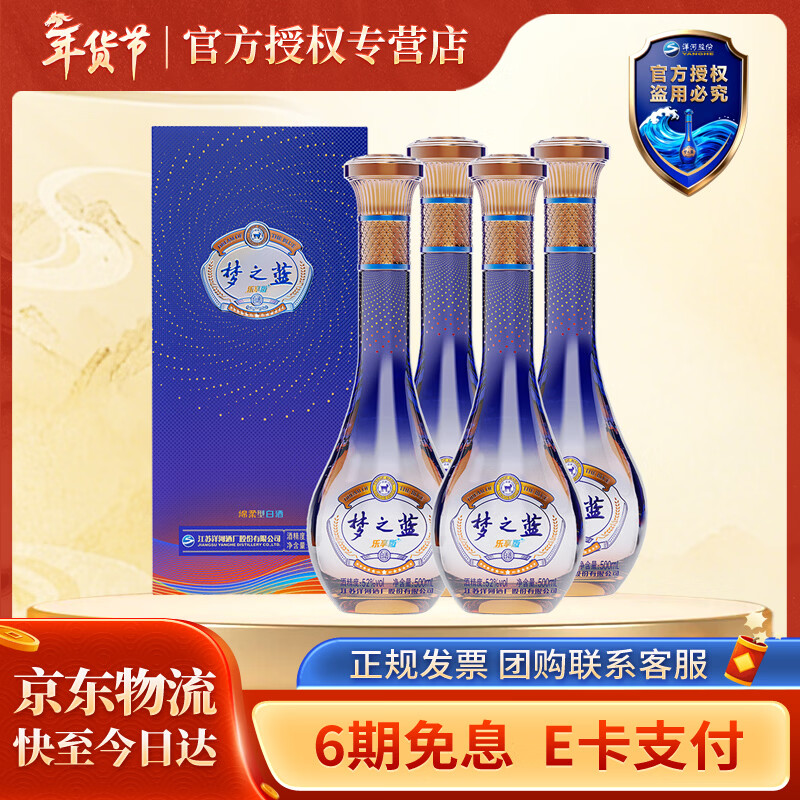 洋河 【过年送礼】梦之蓝 绵柔浓香型白酒 52度 500mL 4瓶 乐享版 整箱装