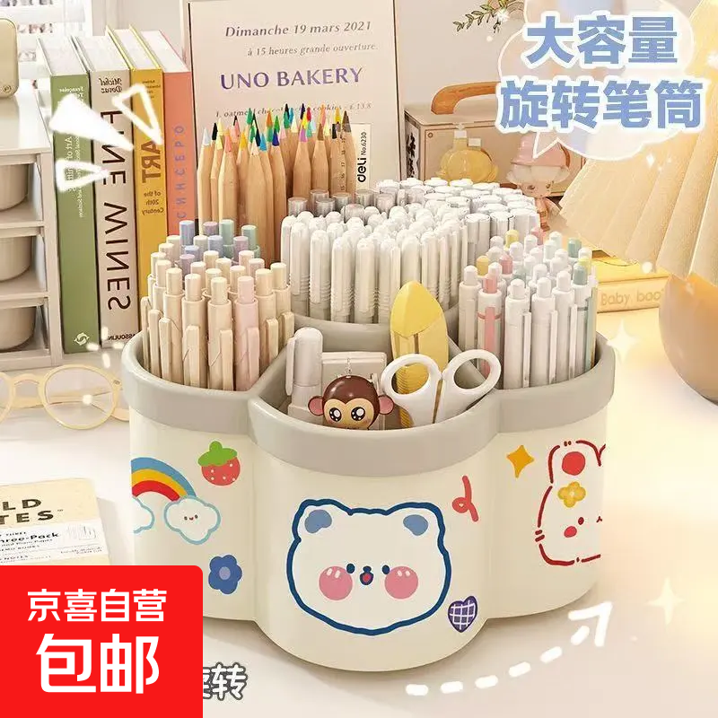 化妆包化妆桶加厚多功能可爱儿童桌面文具收纳化妆品化妆桶化妆包 1个装【旋转收纳盒】
