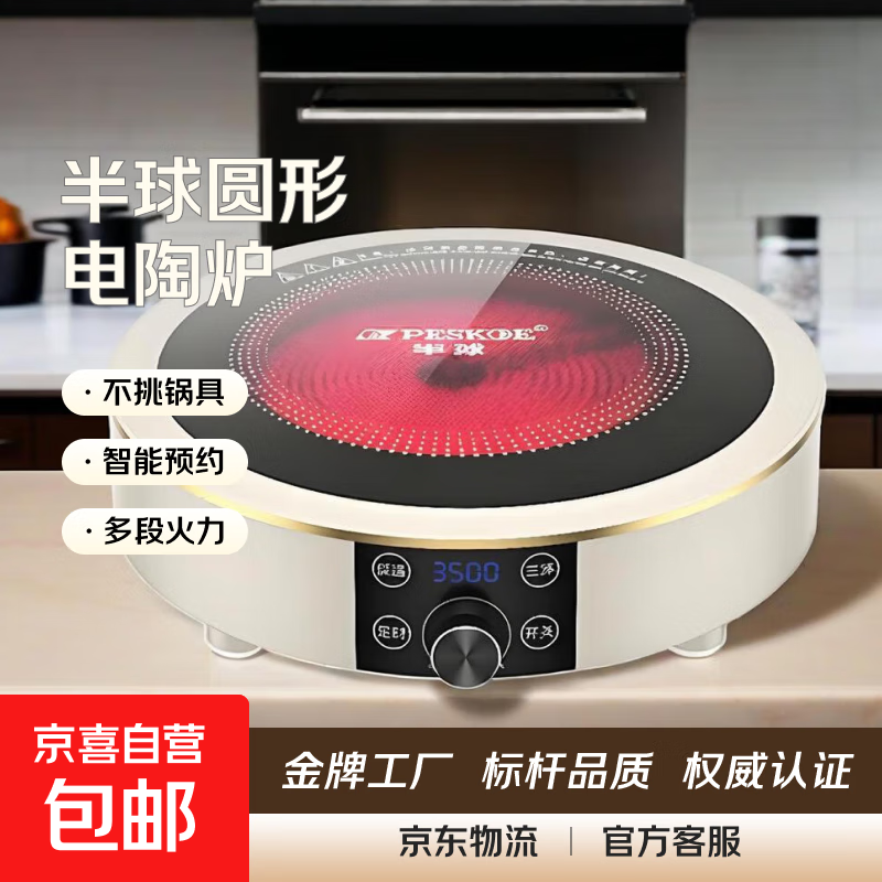 半球圆形电陶炉3500W家用爆炒大功率小型光波炉智能陶瓷电煮茶炉 圆形3500W电陶炉