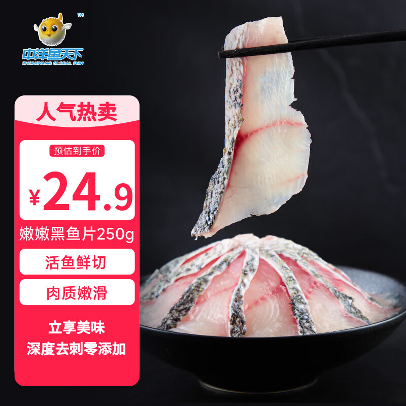 中洋鱼天下无保水去刺嫩嫩黑鱼片250g 生鱼片酸菜鱼水煮鱼火锅 生鲜免洗免切