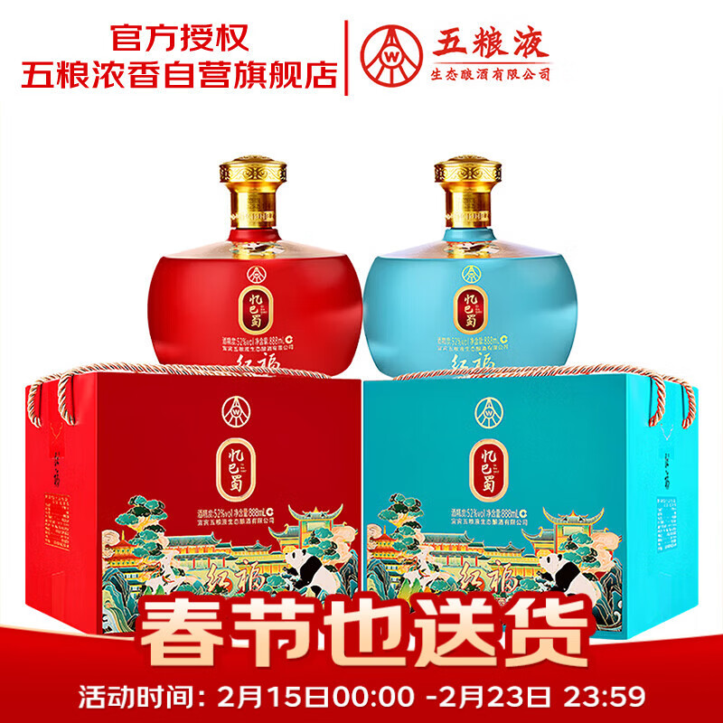 五粮液生态 忆巴蜀 绿豆酒 52度 888mL*2瓶装