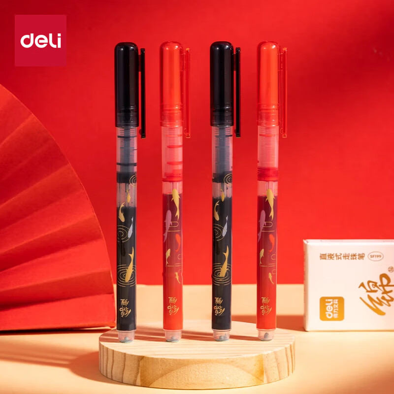 得力(deli)锦鲤直液式走珠笔 0.5mm全针管速干学生中性笔直液笔签字笔 2黑2红 SF199