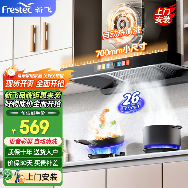 新飞 (Frestec)欧式油烟机抽油烟机家用开放式厨房顶吸油烟机大吸力脱排烟机自动清洗 【700宽26m³】语音彩屏+自动清洗+上门安装
