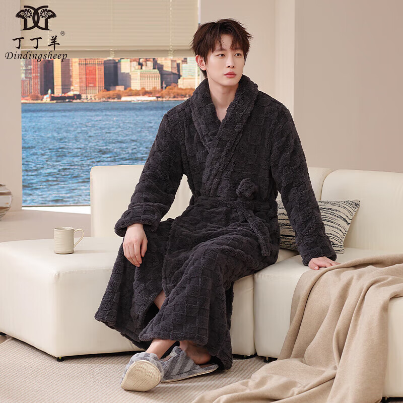 丁丁羊2025新品珊瑚绒秋冬男款睡袍长款加厚秋冬大浴袍保暖法兰绒家居服