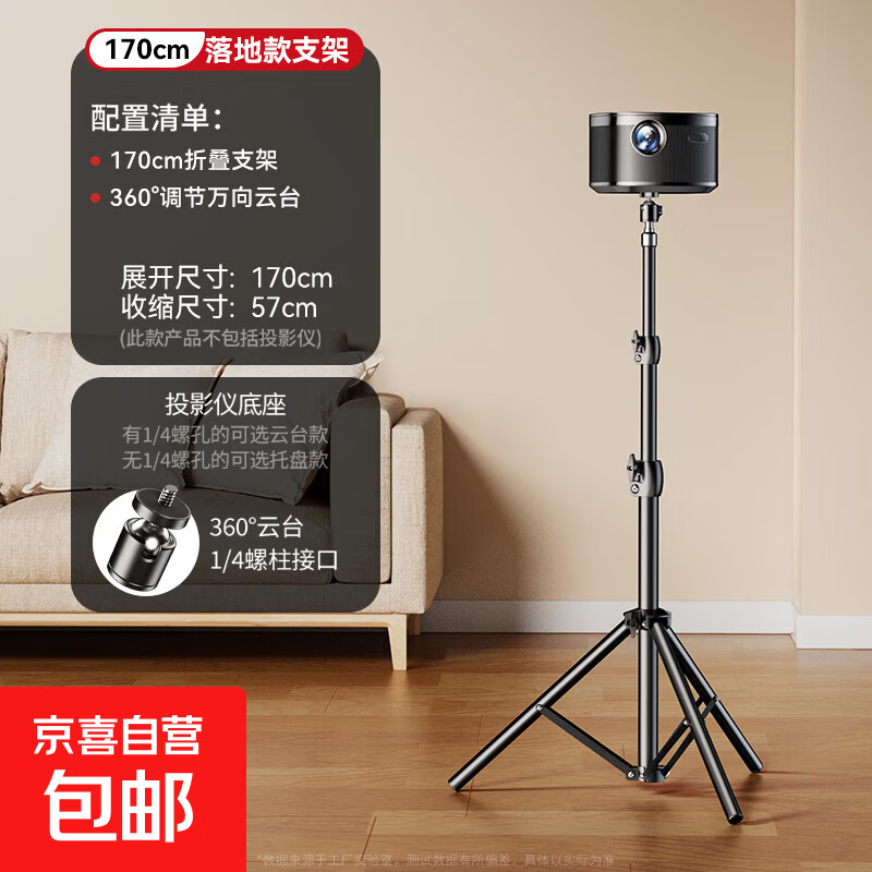 【送货上门】嘉华彩投影仪支架桌面伸缩放置台适用极米hs3当贝d3x坚果投影机落地家用床头免打孔 加粗碳素钢1.7米云台款(落地)【高度角度调节】