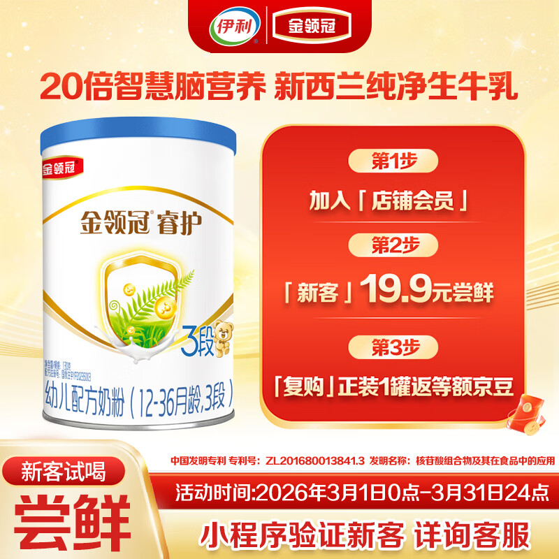 伊利金领冠睿护【新西兰原装进口】幼儿奶粉3段1-3岁130g*1罐