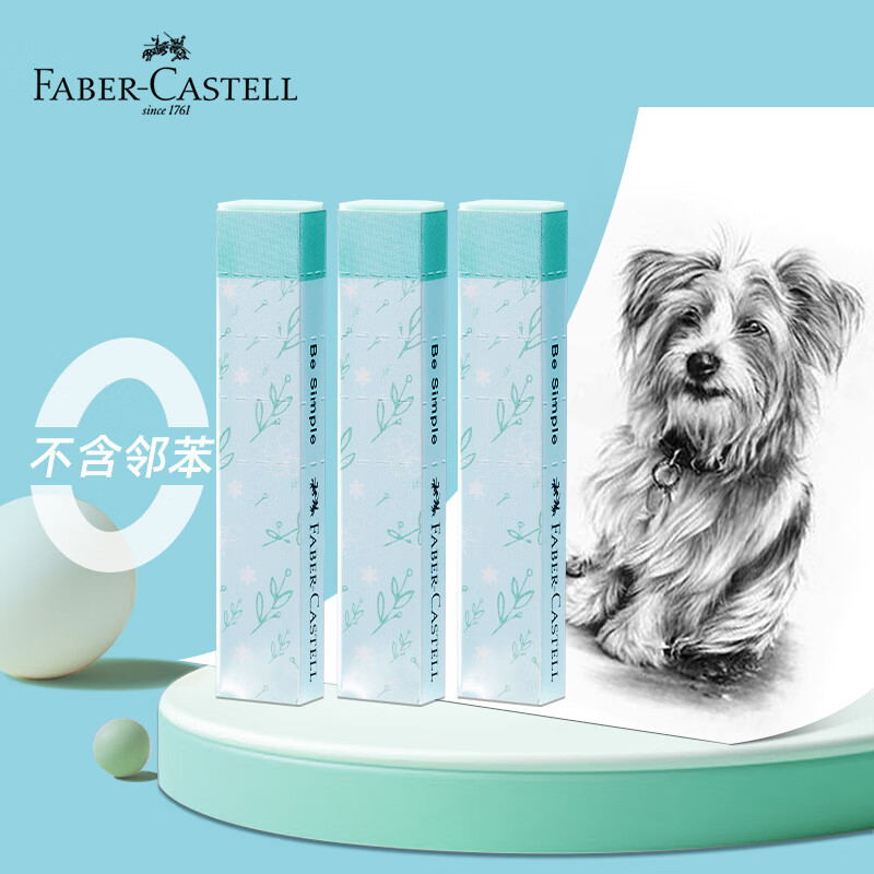 辉柏嘉(Faber-castell)橡皮擦 超净橡皮 考试美术绘图学生 绿色3块装 自然物语系列187411