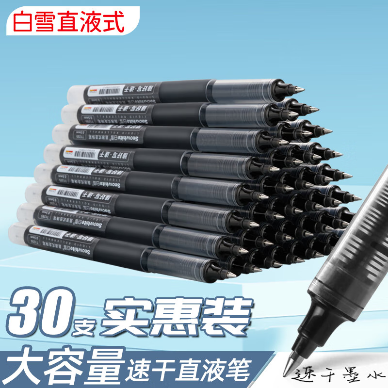 白雪(snowhite) T1255直液式走珠笔颜料墨水子弹头中性笔速干签字笔办公学生用 0.5mm黑色30支/盒
