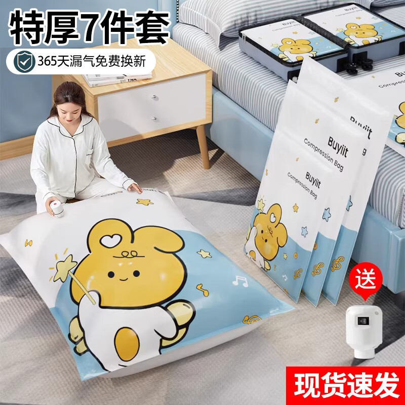 百易特真空压缩收纳袋子衣服衣物棉被子羽绒服抽气密封神器 【电泵7件】2超大2特大2大+电泵 秋意